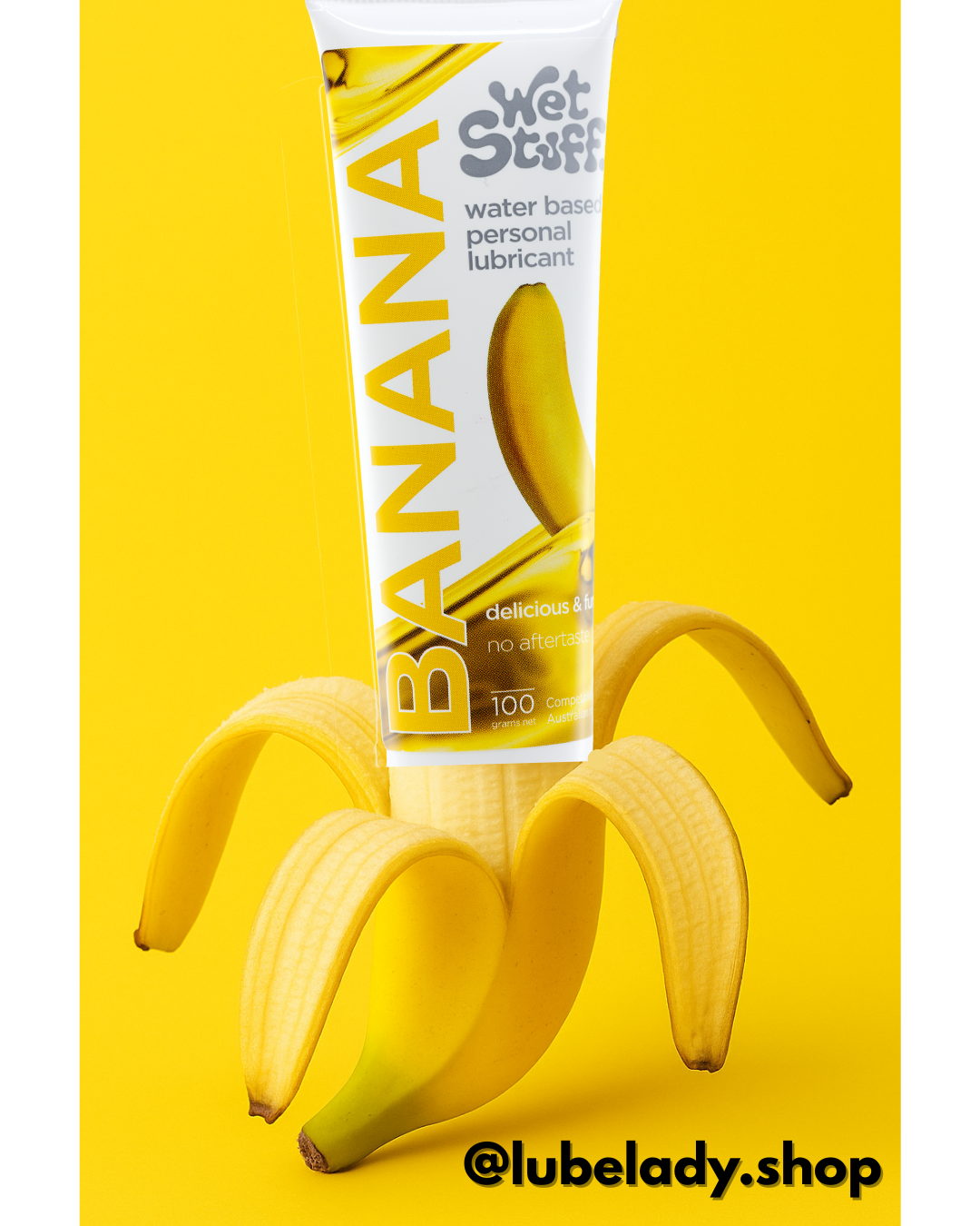 When the lube comes out you'll notice two things: first the smell and second is the consistency. Wet Stuff's tastiest invention is a deliciously erotic banana lube, which is a crystal clear sweet treat.